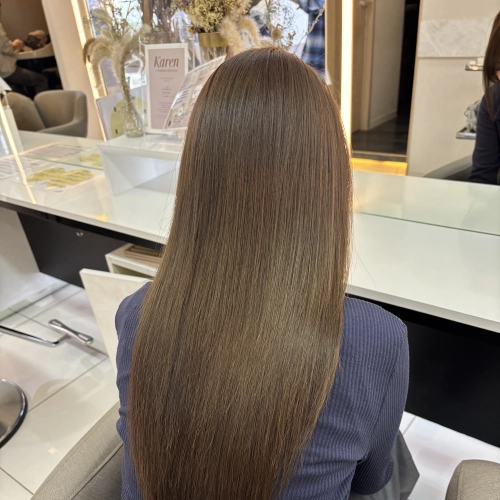 明るめオリーブカラーと髪質改善トリートメントでサラサラに◎
