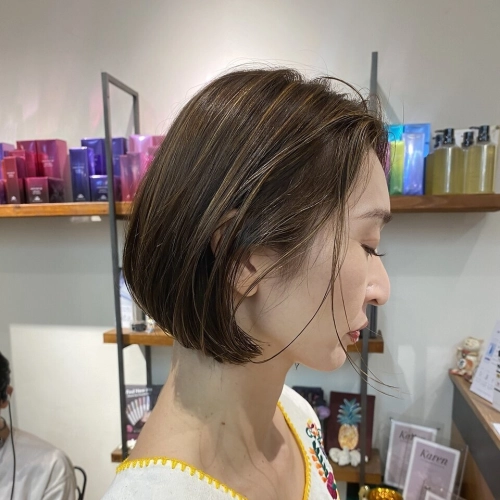 タッセルボブ 切りっぱなしボブ ハイライト