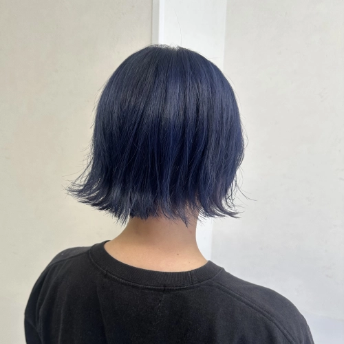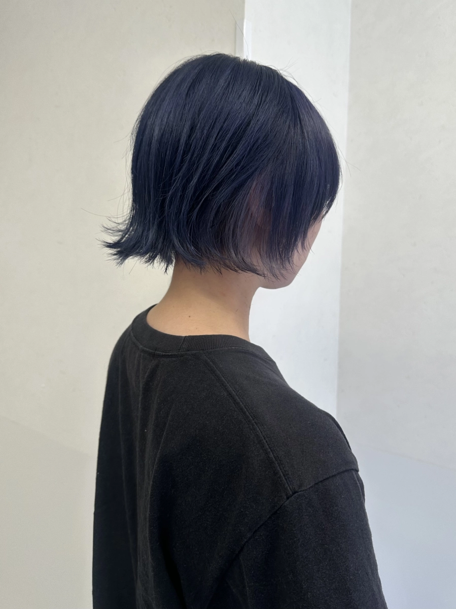 今回外ハネになるようなショートボブにしました!カラーはデザインカラーでブルーとパープルをこだわってデザインを入れていきました!色落ちも2度楽しめるのでおすすめです!カットカラー得意ですのでお任せください!
