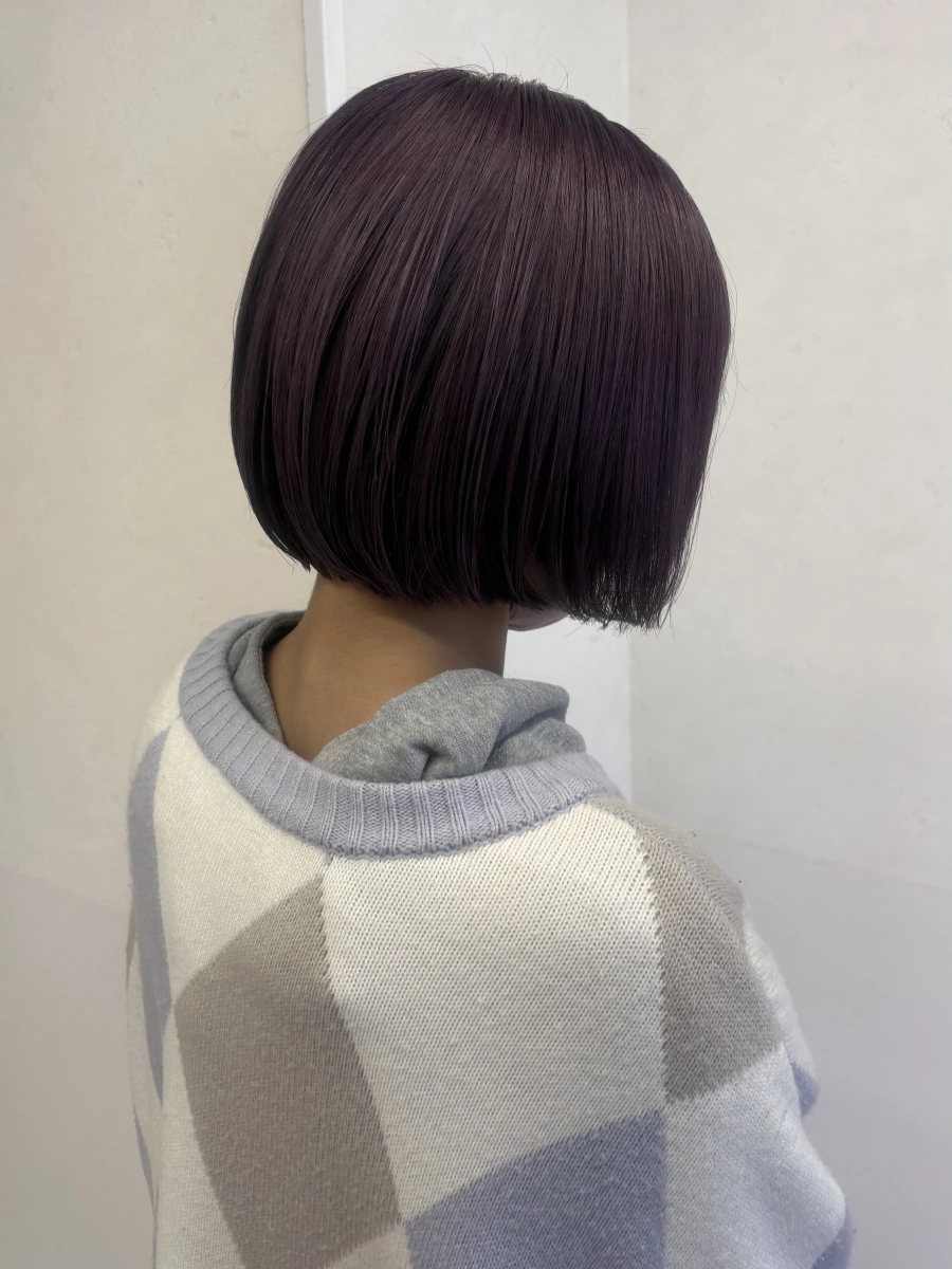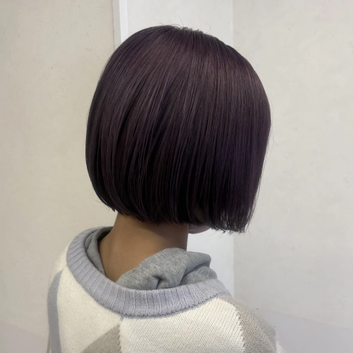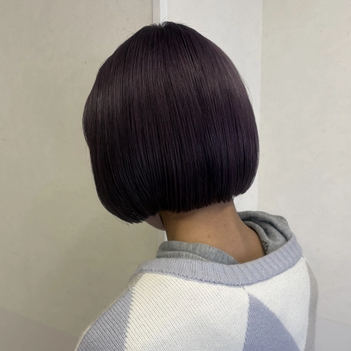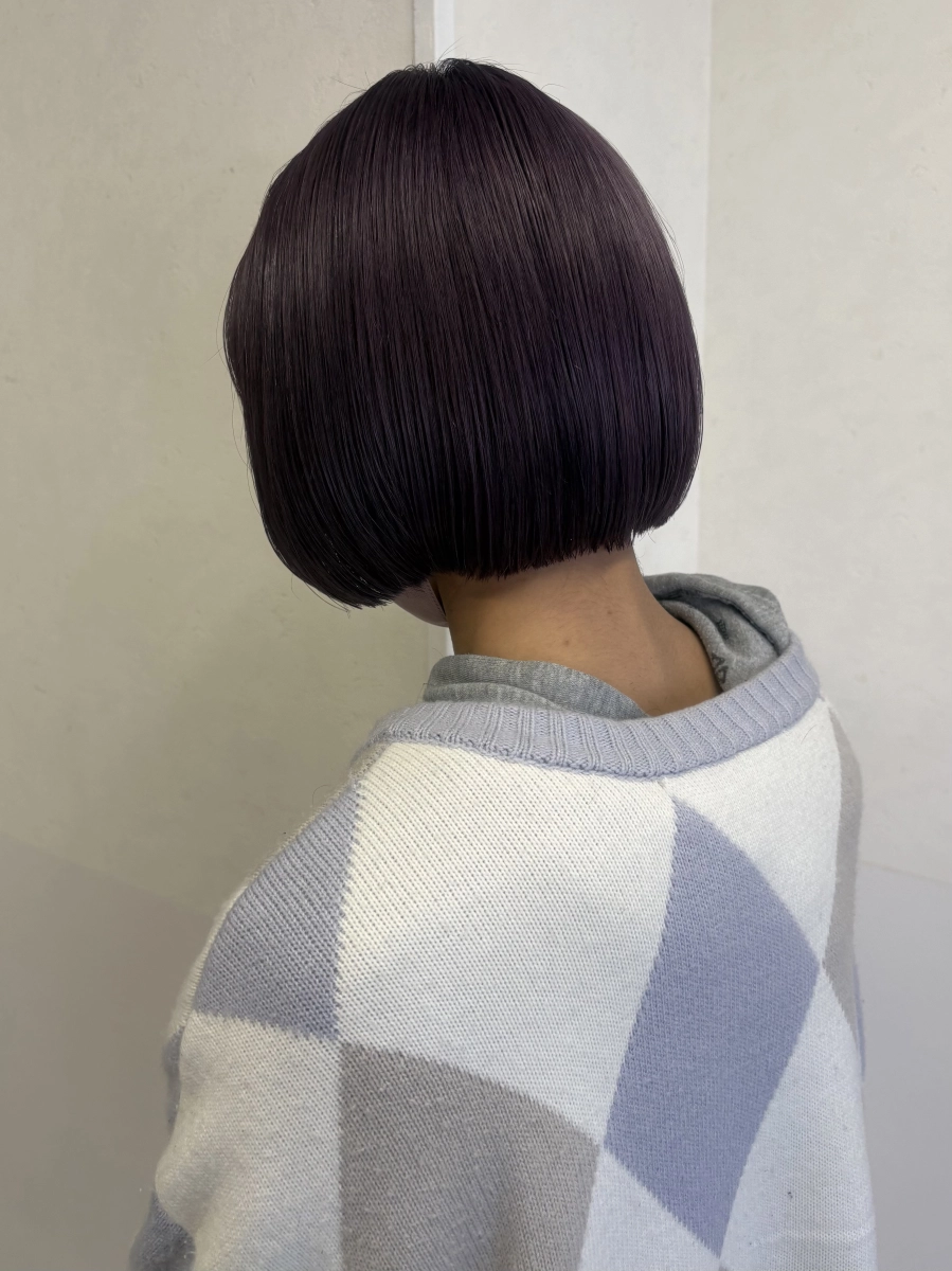 毛先が纏まる切りっぱなしボブ×ラベンダーピンク