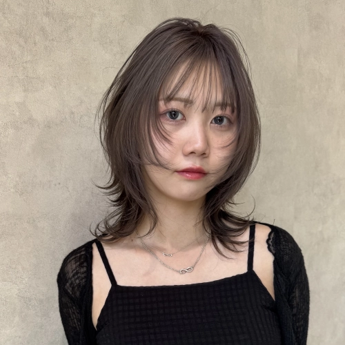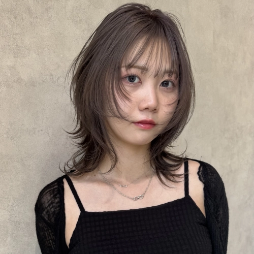 シルキーミルクティーベージュ レイヤー 前髪 ウルフ 外ハネ