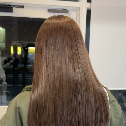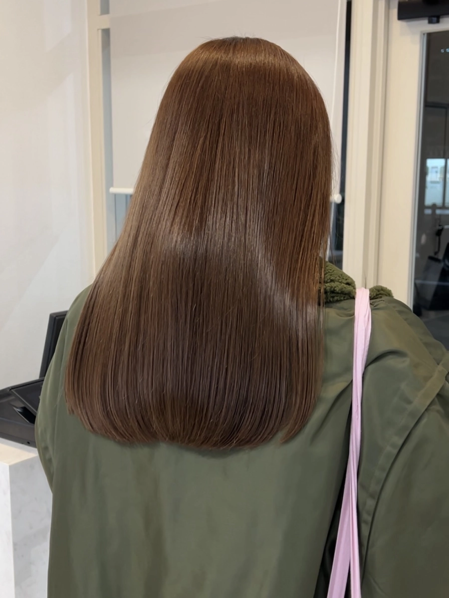 アッシュとオリーブの2方向から赤みを打ち消すので、元の髪が赤っぽくなりやすい方でも透け感のあるブラウンになります!