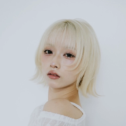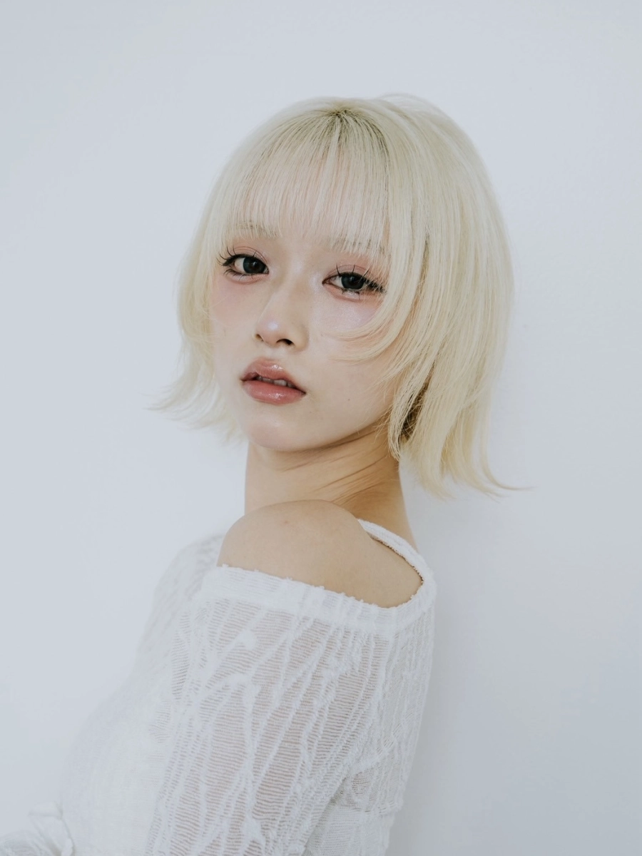 ふんわり揺れる顔周りレイヤーが優しい雰囲気をつくり、自然にまとまる柔らかさをプラス。丸みのある前髪と透け感のあるブリーチカラーが愛らしい印象を引き出し、思わず目を惹く可愛いスタイルに仕上げました。