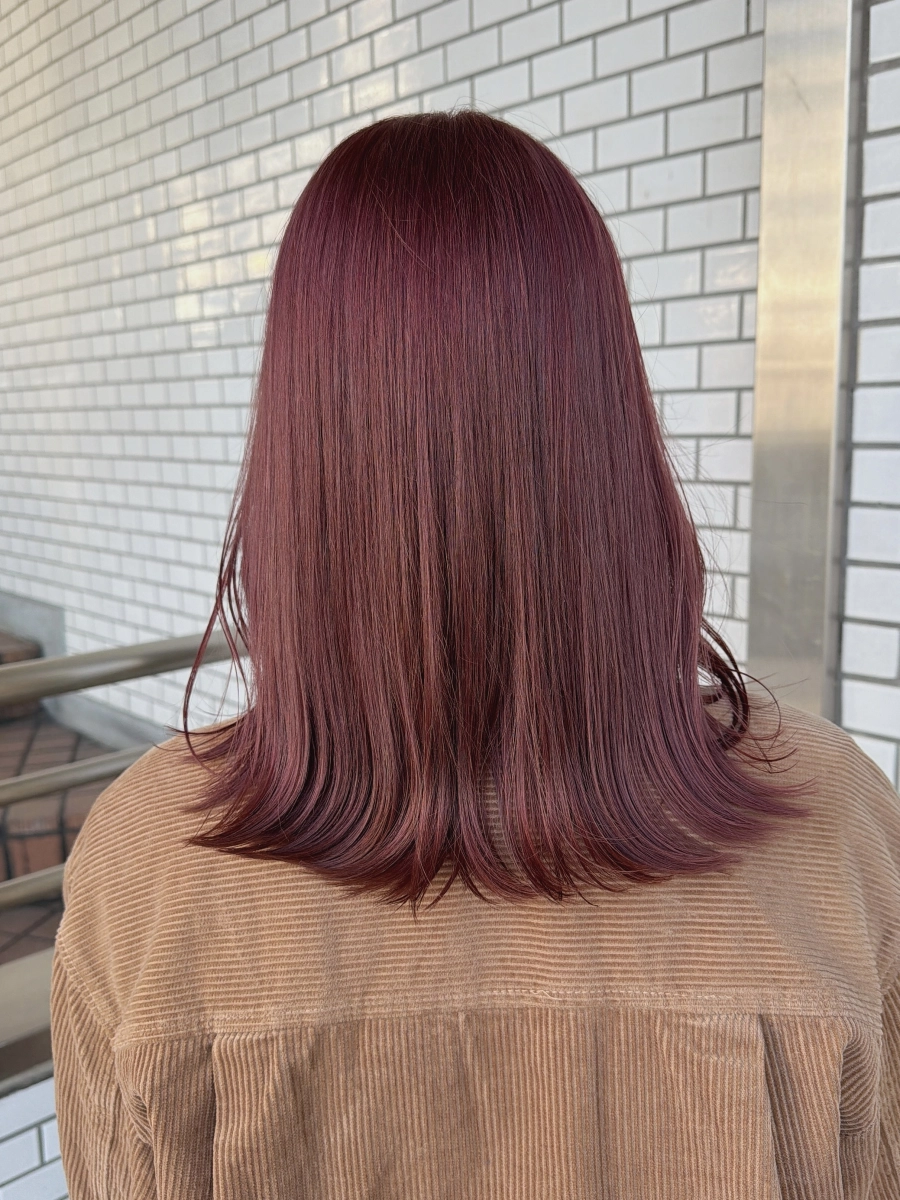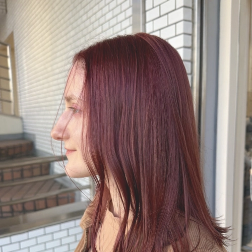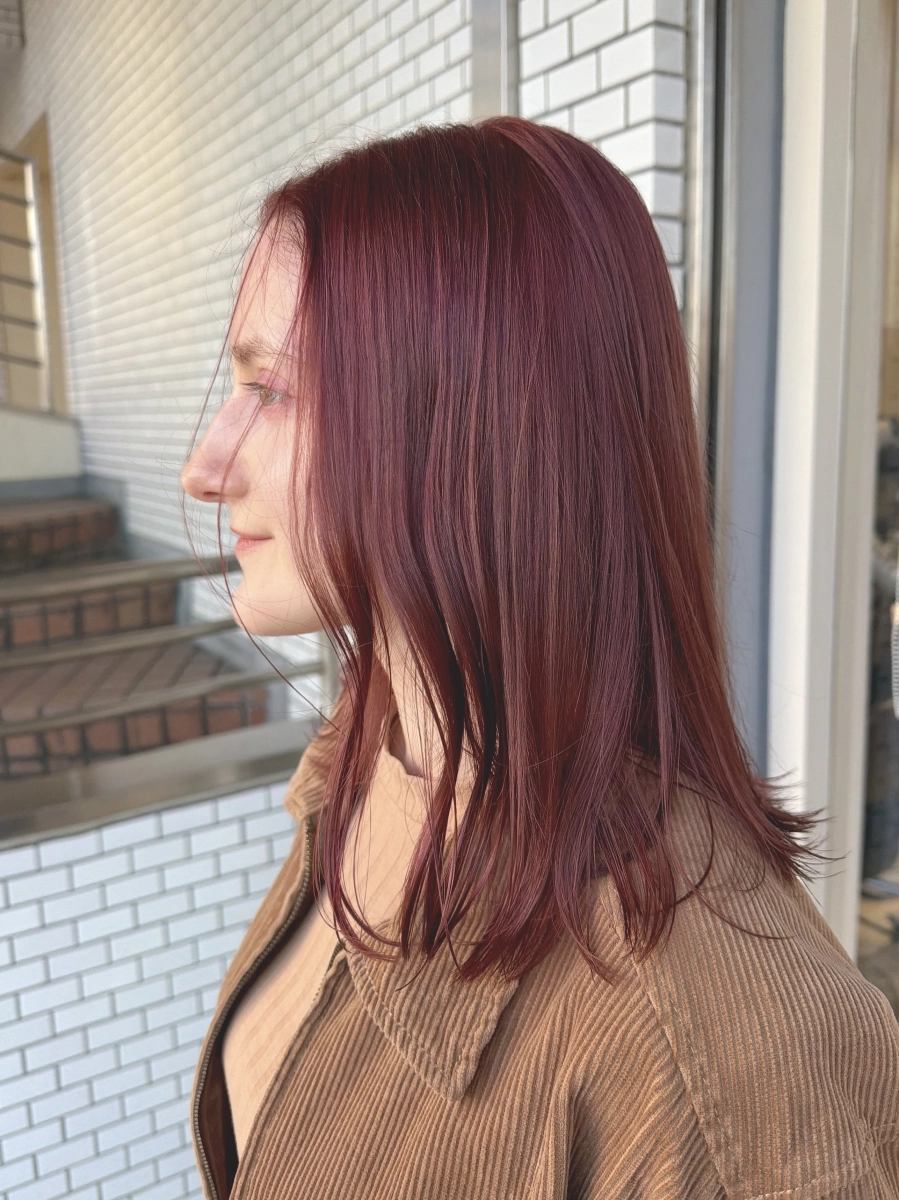 今回ボルダーカラーを作りました!ヨーロッパのお客様で髪質がアジア系とは違い、細くきめ細かく髪の色素が薄いのでブリーチなしでもボルドーにできましたが、日本やアジアは色素が濃いので明るめのカラーをするならブリーチまたはブリーチなしダブル必須!